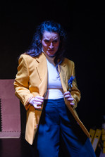Un vertiginoso sola-en-escena en el que la actriz transita de un personaje a otro, moviéndose entre lo grotesco y lo cotidiano. Un laberinto onírico donde se cruzan una comedia delirante y una sátira social mordaz.